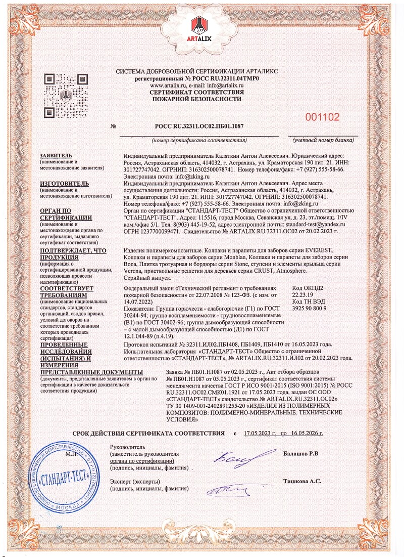 Сертификат соответствия пожарной безопасности ПБ01.1087